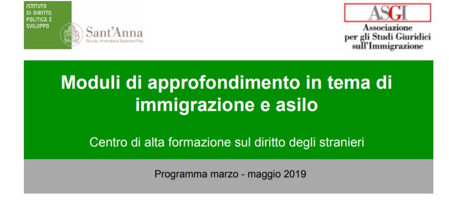 - Dal 23 al 25 maggio 2019 – Modulo in tema di protezione internazionale, protezione complementare e diritto di asilo alla luce delle evoluzioni normative e giurisprudenziali a livello europeo e nazionale, per un totale di 22 ore.